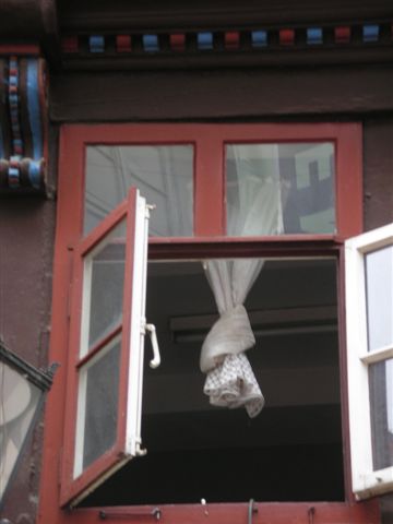 keck die Gardine gerafft