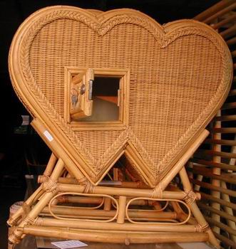 Ich gehe die Hauptstraße entlang und schaue mir die Auslagen der kleinen Läden an. Vor einem Möbelgeschäft bleibe ich stehen. Tische, Stühle und Regale aus Rattan. Sehr hübsch und praktisch für das heiße Klima. Aber was ist das? Ein schrankähnliches Gebilde in Form eines Herzen! In der Mitte ein kleines Türchen mit Schlüssel. Mir fällt so fort das bekannte mittelhochdeutsche Gedicht ein:
