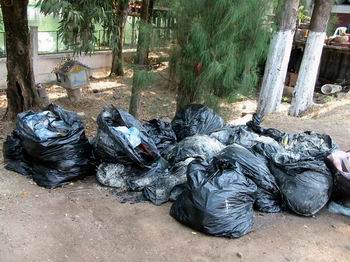Eines Tages ereignete sich aber Folgendes: In einer gutgehenden Gaststätte fiel sehr viel Abfall an. Keiner hatte Zeit, sich um die Entsorgung des Mülls zu kümmern. Der türmte sich am Straßenrand. Der Besitzer überlegte, wie er der Situation Herr werden könne, denn er wusste genau, dass die Krankheitskeime im Müll sich ausbreiten könnten. Er baute ein kleines Geisterhaus in der Hoffnung, die Geister würden ihn beschützen. Er nahm sich aber keine Zeit, dass Tempelchen wohnlich zu gestalten, geschweige denn, Nahrung für die neuen Bewohner bereitzustellen.